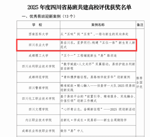 1月9日,四川省教育厅易班建设与发展中心公布了2025年度四川省易班共建高校评优结果,我校凭借扎实的工作成效,斩获“优秀易班迎新案例”“优秀易班共建案例”“优秀易班辅导员”三项省级荣誉,且所有项目均被推荐至全国易班共建评优。其中,“优秀易班迎新案例”为我校首次获评,成功实现该类别荣誉零的突破。