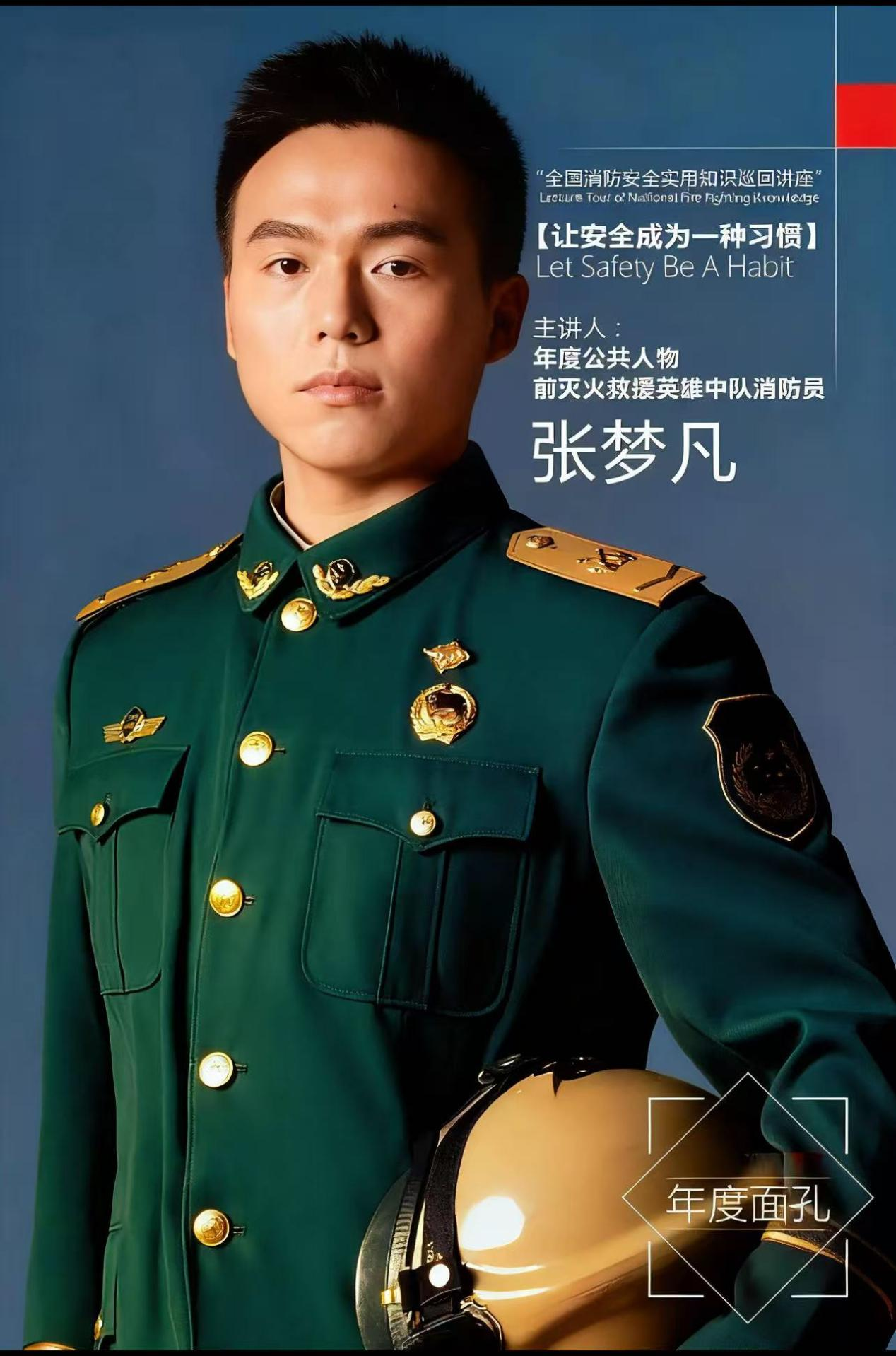 张梦凡,原灭火救援英雄中队消防员,曾参与天津港“8·12”特大火灾爆炸事故救援,亲历生死,抢险近千次。退役后,他投身公共安全教育,奔走于全国各地开展消防巡讲,以生命之重诠释安全之责,用专业与热忱点亮万千生命的“平安灯”。