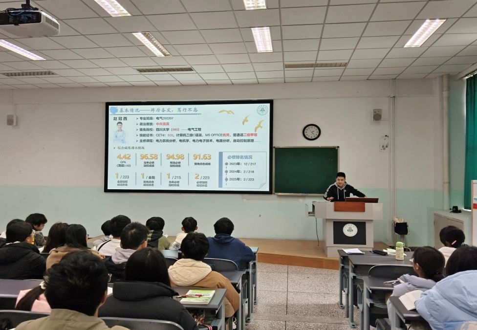 通过学院推荐,本次活动共遴选60多名获优秀学生标兵、国家奖学金等荣誉的优秀学子走进课堂,覆盖全校三个校区59个教学班,累计宣讲50余次。课堂上,来自各学院不同专业的优秀学子们,带着自己从适应大学生活到明确学习目标的摸索、从高效时间管理到运用AI辅助学习的技巧,从科研探索到保研心得,从志愿服务到社会实践,毫无保留地向师弟师妹们传授自己的“秘籍”。他们无一例外地向学弟学妹们传达着这样一个理念:要想在大学里有所收获,获得成功,就必须“勤奋、律己、笃实、效率、专注、坚持、进取”,他们的分享让新生们明白一个道理:大学的成功从不是偶然,而是在清晰目标里奋斗出来的答案。