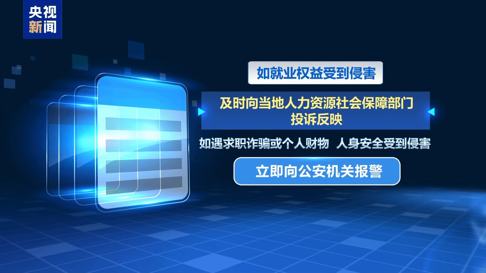 如就业权益受到侵害,及时向当地人力资源和社会保障部门投诉反映。如遇求职诈骗或个人财物、人身安全受到侵害,立即向公安机关报警。