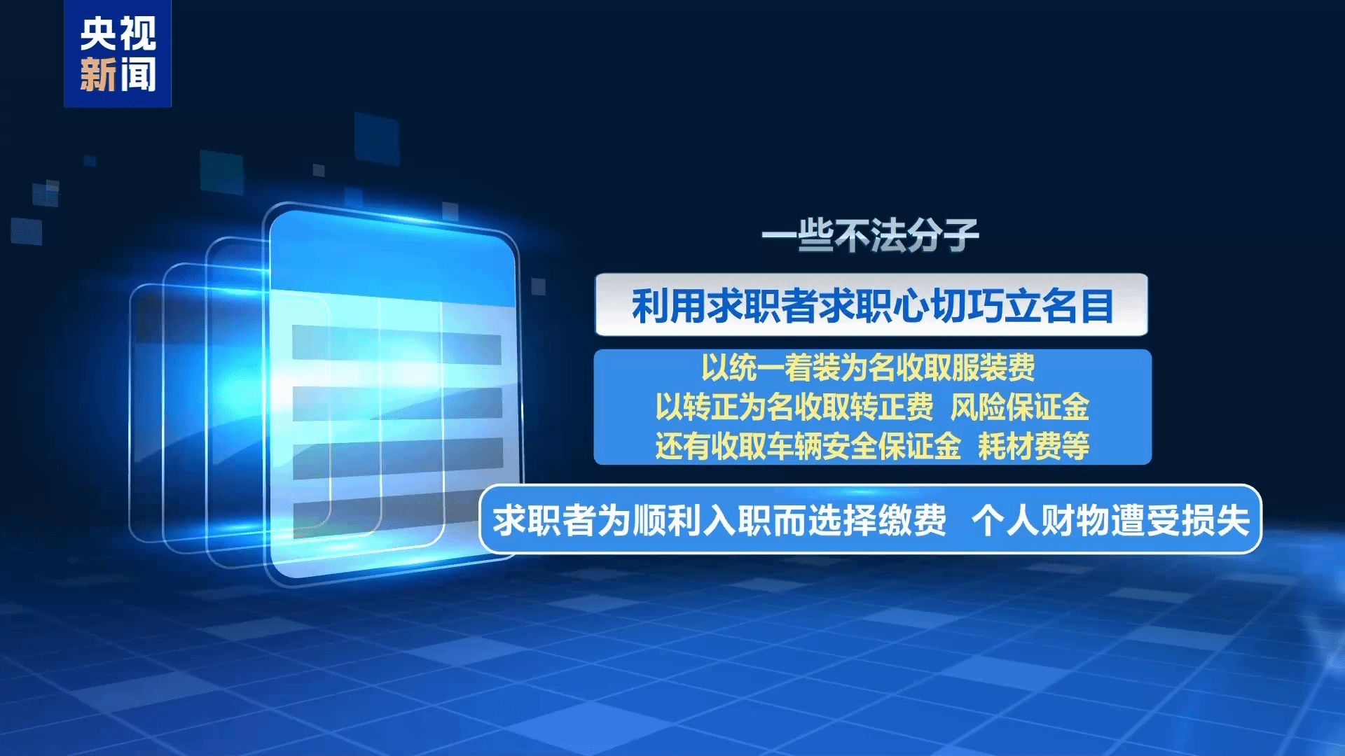 从无资质“黑职介”、虚假高薪招聘,到以培训为名收费敛财、入职前巧立名目收取各种费用,各类求职诈骗层出不穷,让许多人求职不成反遭财产损失。