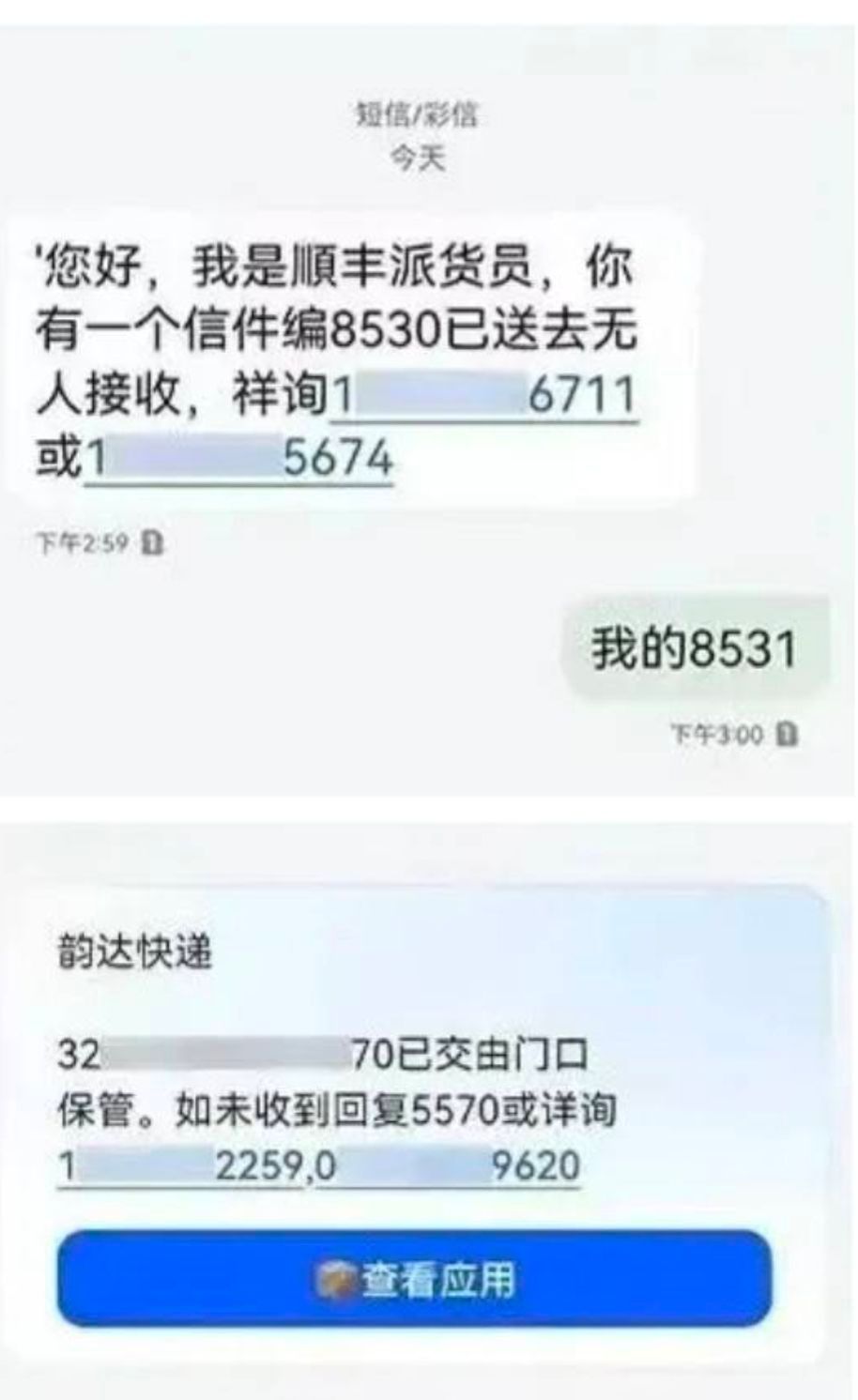一、虚假快递物流诈骗短信