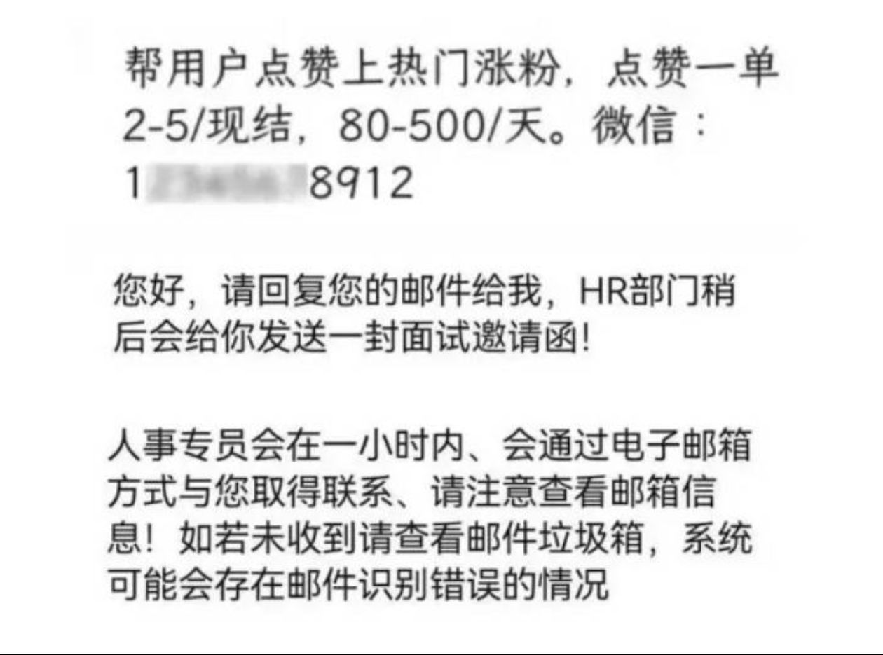 五、高薪兼职、招聘诈骗短信