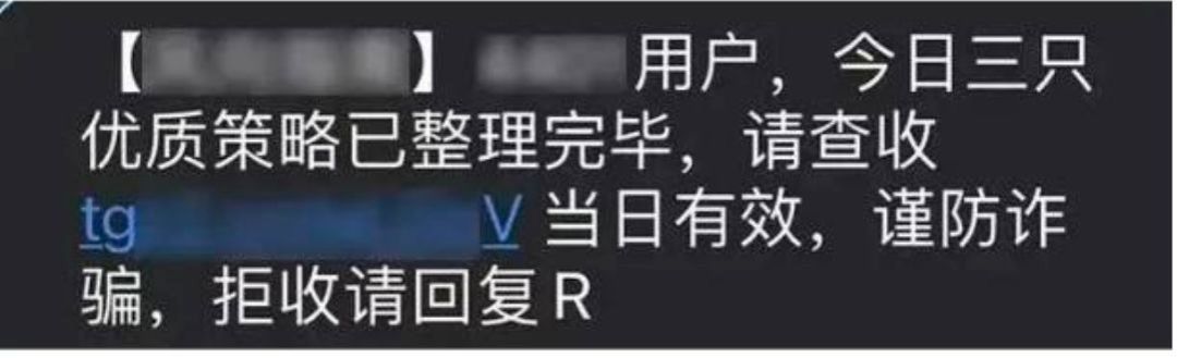 骗子通过向手机用户发送“高回报”“优质”“稳赚不赔”的投资理财产品或方案短信,引导用户点击涉诈网址进行投资理财从而实施诈骗。